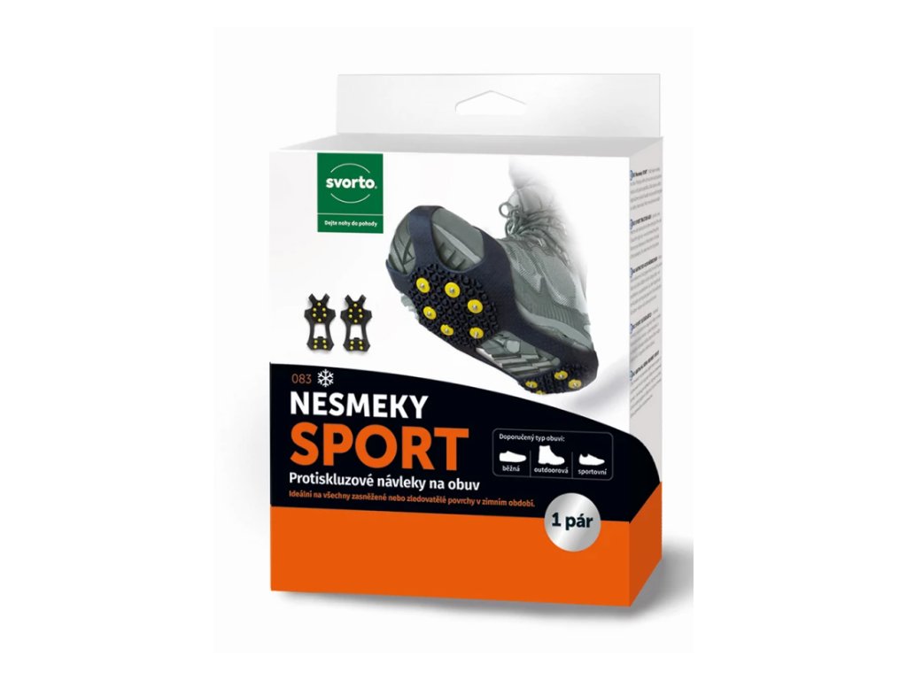 Pryžový materiál umožňuje snadné a rychlé nasazení. Z důvodů různých typů obuvi doporučujeme vyzkoušet vybranou velikost. Vhodné pro vycházkovou i sportovní obuv. U vel. M je v přední části 5 hrotů. U vel. L a XL je v přední části 6 hrotů.