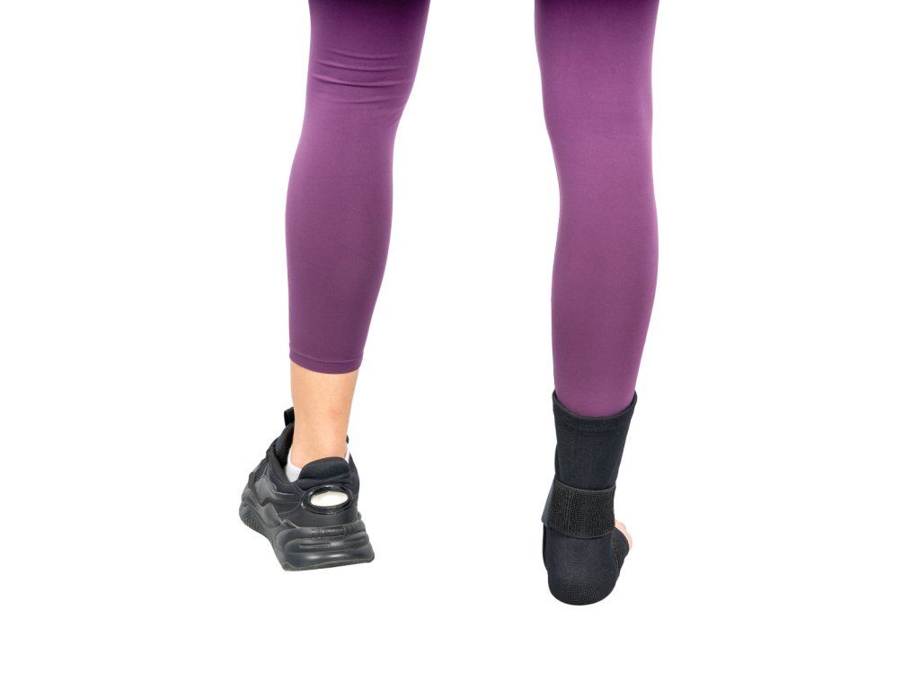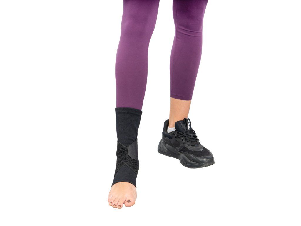 Bandáž hlezenního kloubu z kompresní pleteniny s elastickým popruhem poskytuje stabilizaci kotníku a slouží jako alternativní řešení k tejpování. Okraje bandáže se zmírněnou kompresí snižují tlak na lemu a zajišťují pohodlné nošení.