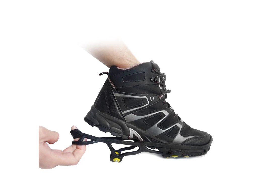 Pryžový materiál umožňuje snadné a rychlé nasazení. Z důvodů různých typů obuvi doporučujeme vyzkoušet vybranou velikost. Vhodné pro vycházkovou i sportovní obuv. U vel. M je v přední části 5 hrotů. U vel. L a XL je v přední části 6 hrotů.