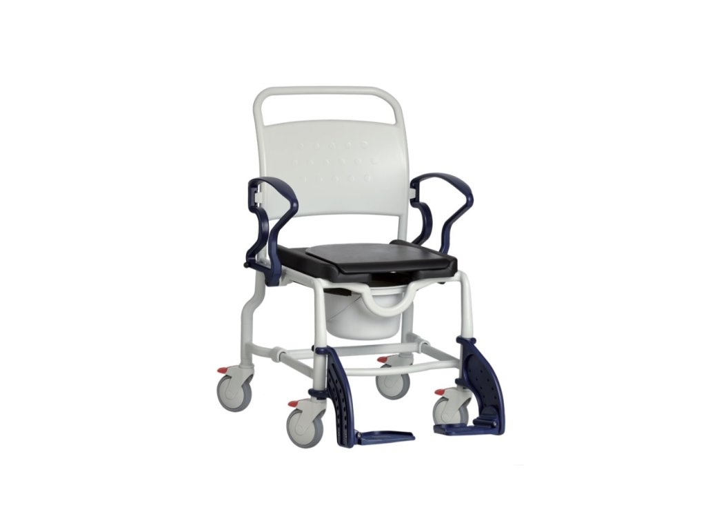 Po odejmutí toaletní nádoby lze s vozíkem nacouvat nad běžné WC. Vozík je vybaven kolečky o průměru 12,5 cm. Zadní pár koleček je aretován nášlapnými brzdami. Nosnost vozíku je 150 kg. Pro potřebu transportu je zádová opěrka odnímatelná.