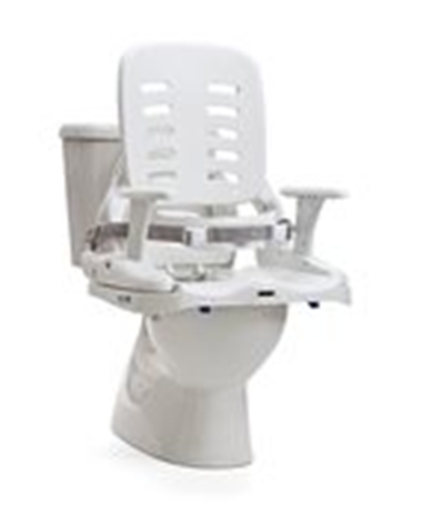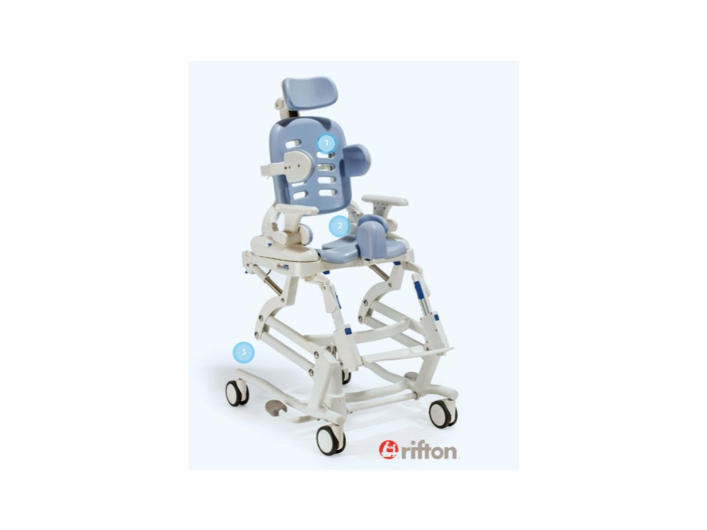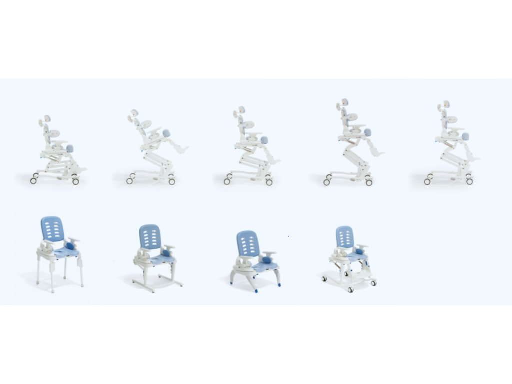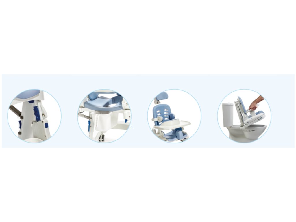 - Mobilní nesklopná základna 123 - pro medium HTS je výškově nastavitelná a polohuje sedadlo postupně 15/20" od podlahy. Odolná, uzamykatelná kolečka umožňují snadné a dočasné umístění systému nad toaletami téměř jakékoli velikosti a také dobře poslouží při použití HTS jako sprchové křeslo.