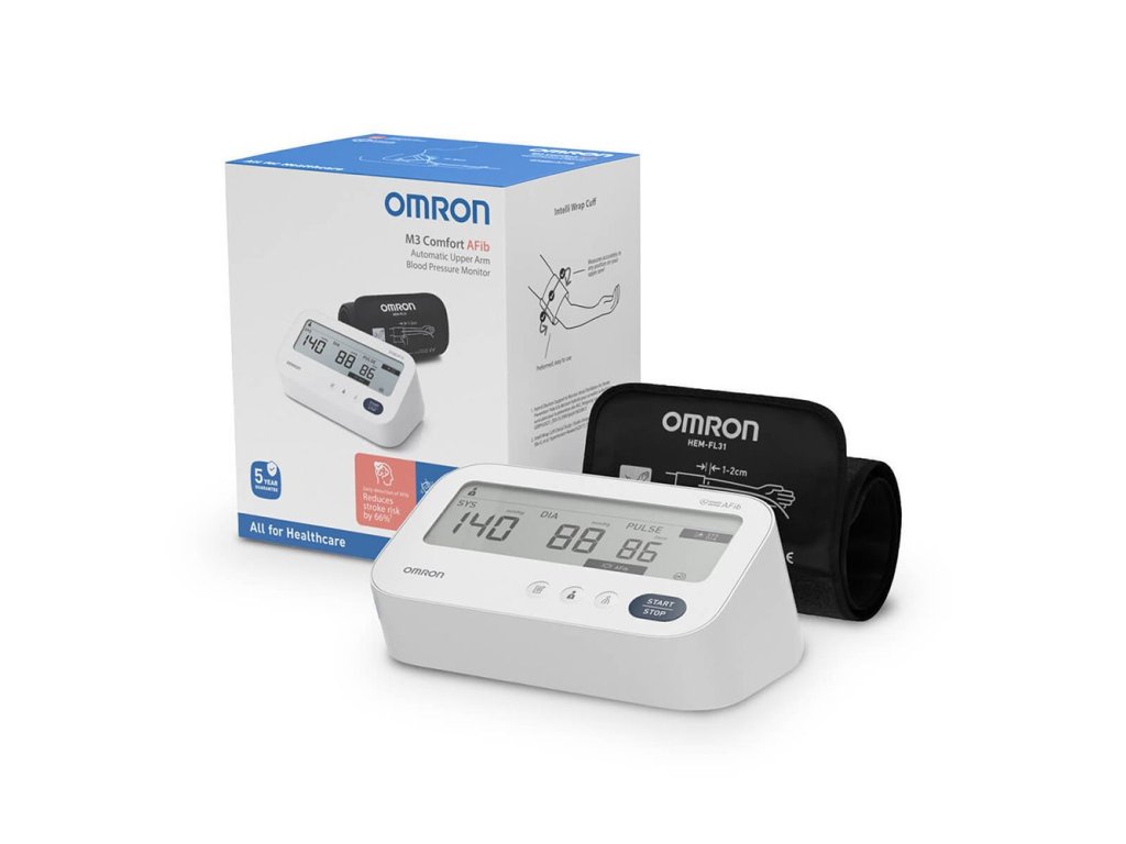 Tonometr OMRON M3 Comfort AFib je navržený pro spolehlivé domácí měření krevního tlaku s důrazem na přesnost a komfort. Intelli (Intelli-/Intelli Wrap) manžeta 22–42 cm s větší snímací plochou minimalizuje chyby při umístění manžety a zlepšuje konzistenci výsledků. Technologie Intellisense™ zajišťuje komfortní a optimální nafouknutí manžety. Přístroj také detekuje možné příznaky fibrilace síní (AFib) při každém měření a upozorní uživatele na nepravidelnou srdeční akci — při opakovaném zobrazení AFib konzultujte výsledky s lékařem. Paměť pro 2 uživatele (2 × 60 měření) a režim HOST usnadňují sledování hodnot rodiny. Set obsahuje i síťový zdroj pro pohodlné napájení.